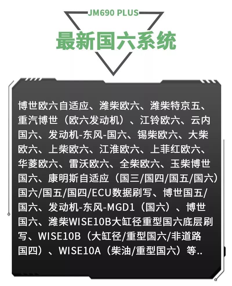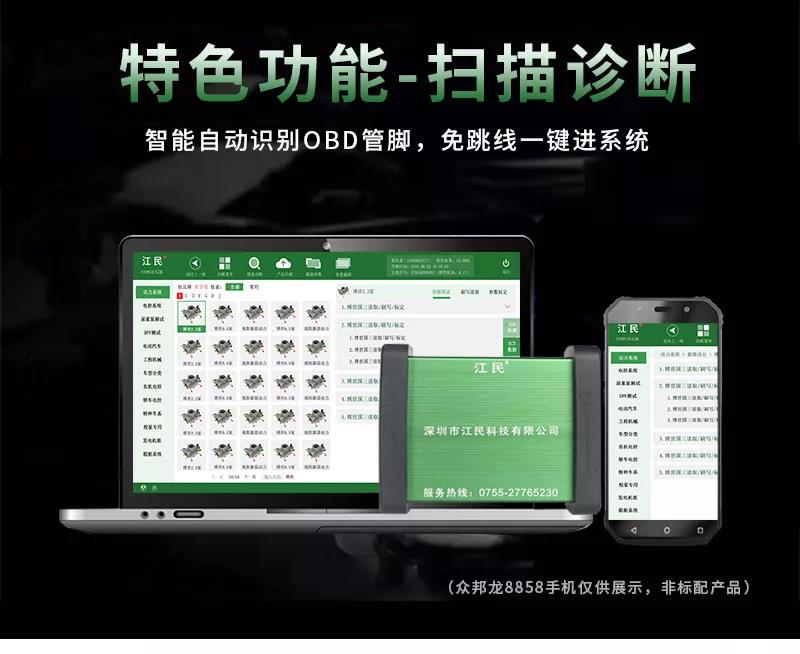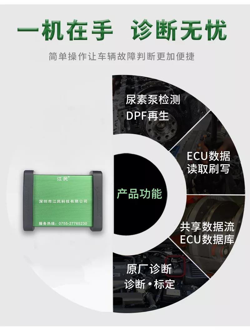 江民690plus綜合版柴油動力診斷儀是專為柴油車維修廠量身定做的一款智能型多功能綜合性診斷設(shè)備,該診斷儀可以檢測市面上包括卡車,客車,皮卡,SUV,工程機械車輛及輪船,發(fā)電機組,農(nóng)業(yè)機械等各類柴油動力,同時兼顧CNG/LNG車輛的故障診斷,可以輕松實現(xiàn)讀取故障碼,清除故障碼,讀數(shù)據(jù)流,元器件測試,標(biāo)定發(fā)動機參數(shù)及修改ECU數(shù)據(jù)等,并且除檢測發(fā)動機外,還支持ABS/CBCU/AMT 等系統(tǒng)的故障檢測。配備品牌聯(lián)想筆記本電腦,軟件操作更流暢,兼具遠程專家會診功能,隨時隨地聯(lián)上網(wǎng)絡(luò)即可遠程協(xié)助解決各類疑難雜癥故障,一機在手師傅徒弟修車從此無憂,設(shè)備支持手機APP操作,且可以同時安裝五部手機,任何一個工人帶著設(shè)備都可以修車,方便快捷江民690plus全有啦!